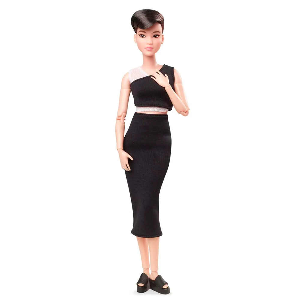 Featuring on-trend fashions with photo-worthy details, Barbie Looks dolls inspire the stylist within. With brand-new face sculpts and posable articulated bodies, they’re ready to style, pose, photograph and post. This Barbie Looks doll features a unique face sculpt and a chic pixie cut with shaved, flocked sides. Her premium fashion includes a high-waisted midi skirt with a cropped top and platform slides. Featuring fresh looks and style personality, Barbie Looks dolls make the perfect gift for stylists, fashion aficionados and Barbie collectors. Discover them all to style the whole crew. Each sold separately, subject to availability. Includes doll stand and Certificate of Authenticity. Doll cannot stand alone. Colors and decorations may vary.